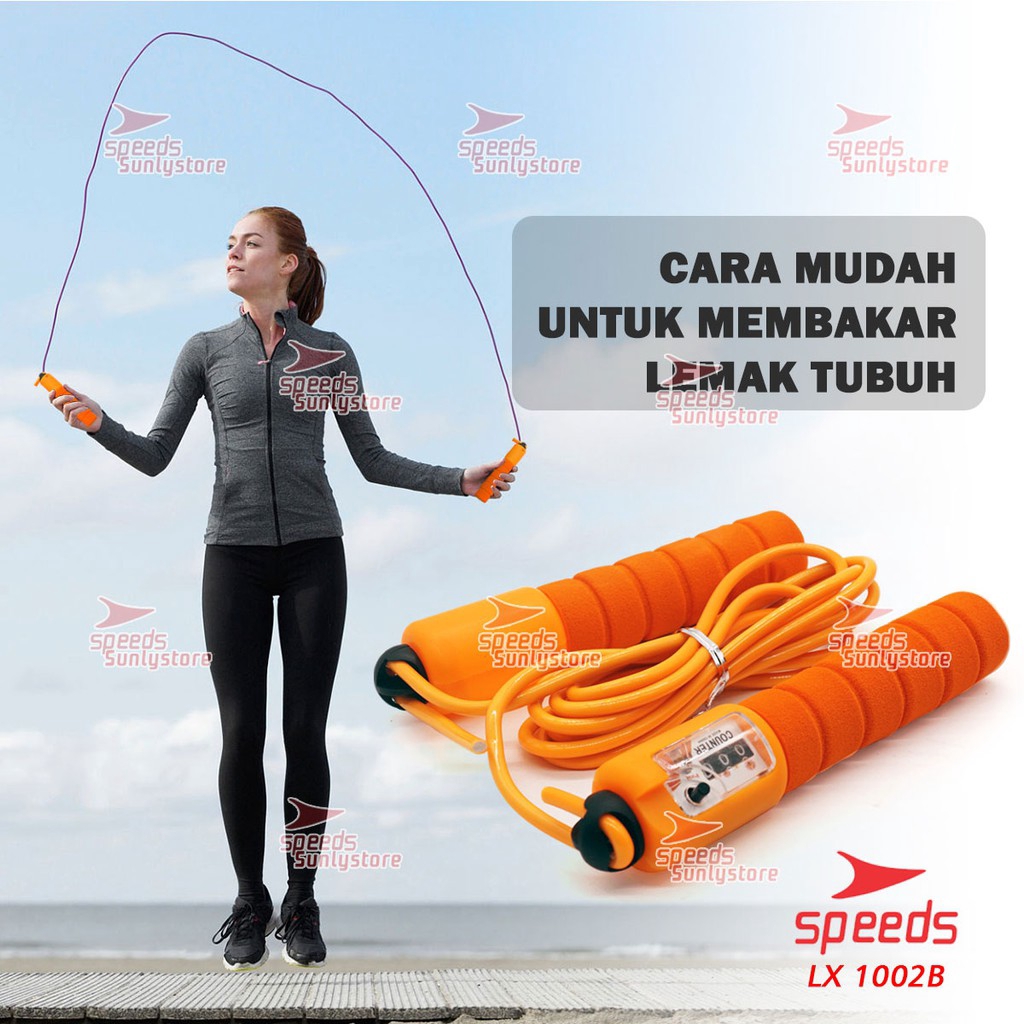 Tali Lompat skipping Speeds 1002- Jump Rope ini berguna untuk yang ingin bermain lompat tali. Tali lompat ini sudah dilengkapi dengan alat hitung,numerik meter jadi kita akan tahu sudah berapa lompatan yang kita Lakukan . Panjang tali 3 meter. Tali nya terbuat dari bahan Rope tali lompat skipping sangat bermanfaat bagi kesehatan badan barang impor