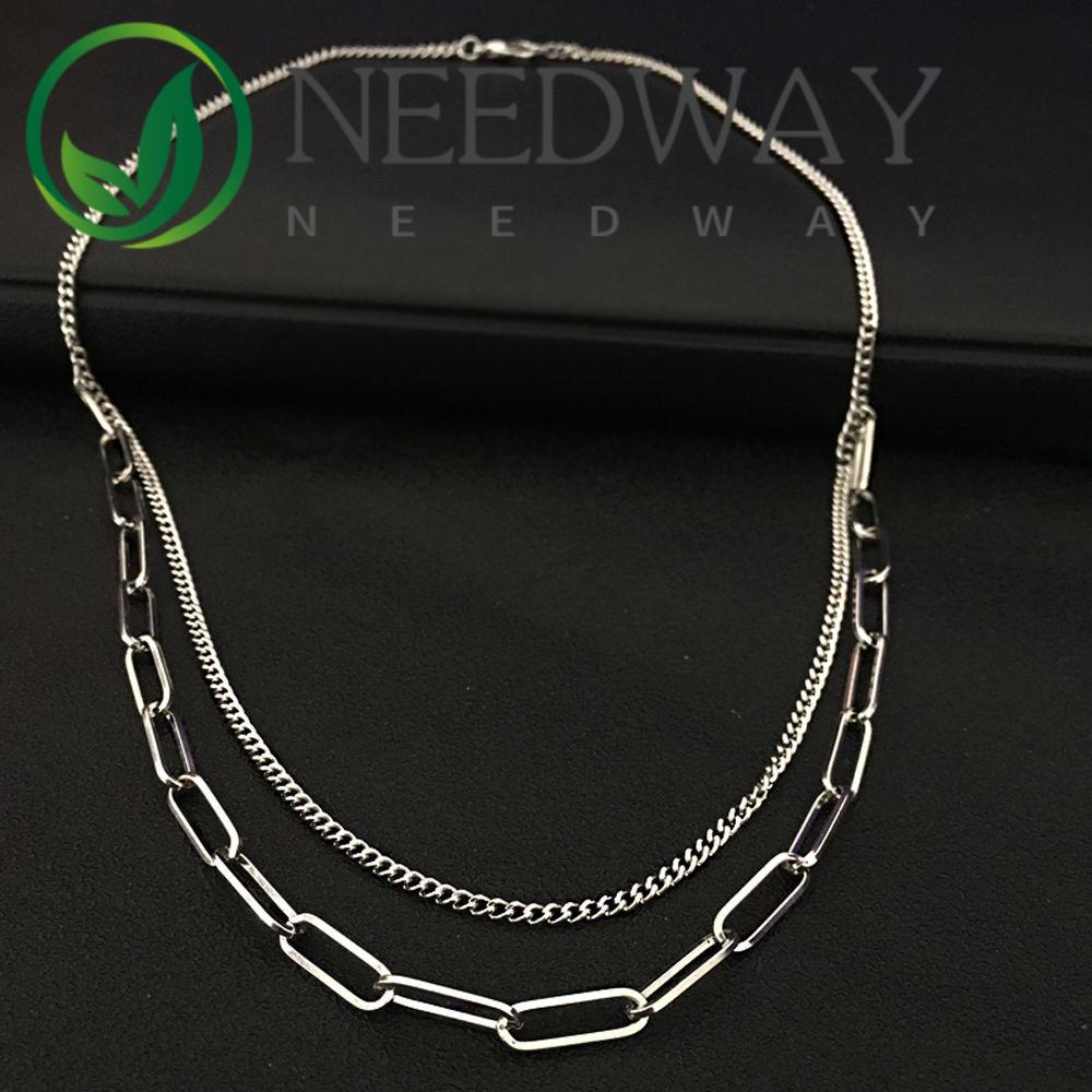 Kalung Pria Double-Layer Choker Fashion Perhiasan Stainless Steel Hiphop Fashion Unisex Kreatif Kepribadian Retro Vintage Sederhana Street Cool