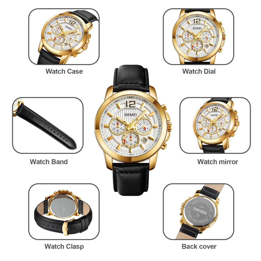 Detail SKMEI 1989 Jam Tangan Pria Analog Chrono Leather WATCHKITE WKOS