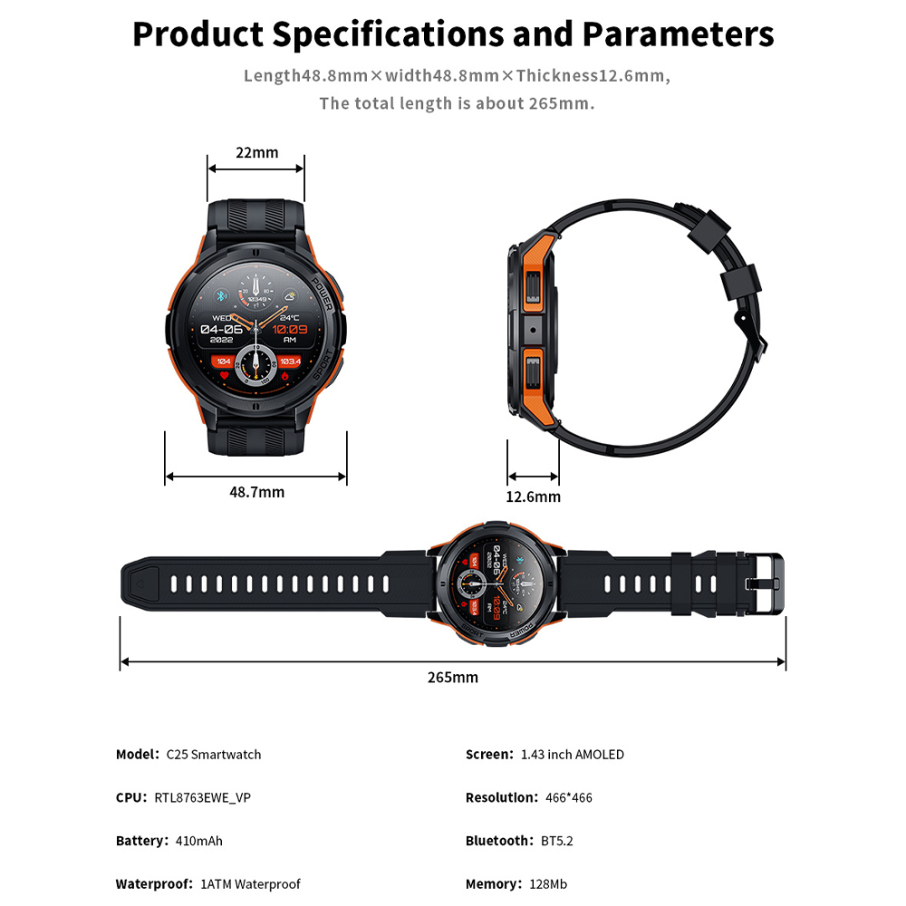 ❤️Pengantar: Layar: Layar Gorilla Corning 1.43 inci Resolusi: 466x466 Baterai: baterai berkapasitas besar 410 mAh Bluetooth: 5.2