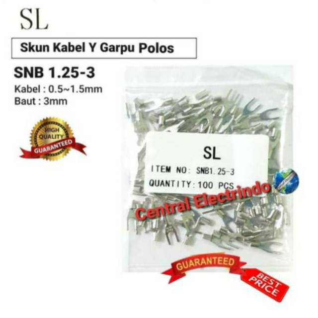 Skun kabel Y Garpu Polos SNB 1.25-3 Kabel 0.5~1.5m Baut 3mm SL.