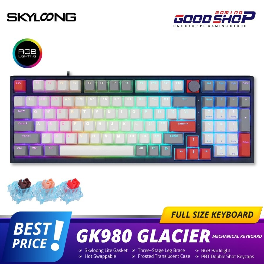 Detail SKYLOONG GK980 GLACIER MECHANICAL GREY WHITE RED PBT KEYCAPS