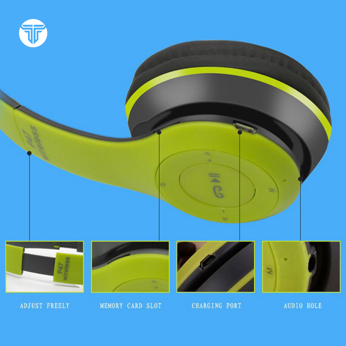 P47 Headphone Wireless - Bluetooth satu ini sangat cocok bagi kamu yang ingin tampil sporty dan gaya! Dengan koneksi wireless - bluetooth, kamu dapat menggunakan headphone ini bebas tanpa ada gangguan kabel yang melilit dan mengganggu!