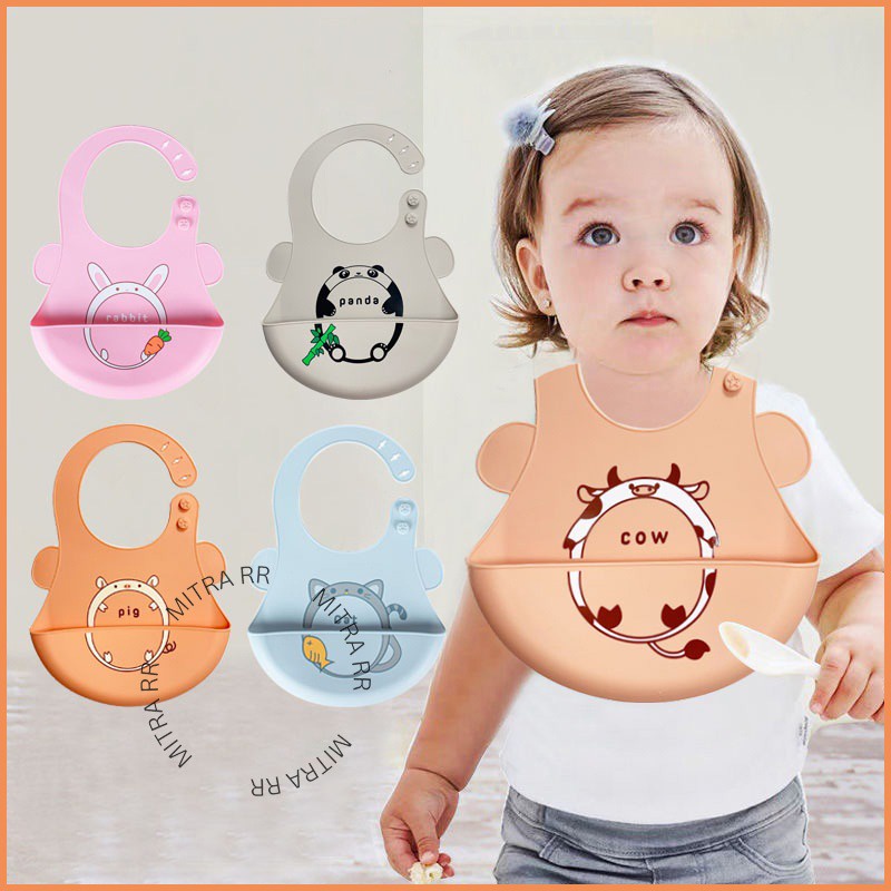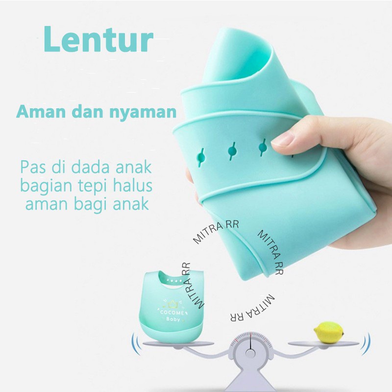 Celemek makan bayi silicon Bahan : Silicon / Rubber Ukuran : ± 23 x 29Cm Ukuran Kantong : ± 6 x 23 x 3Cm