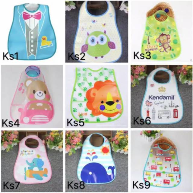 Slabber Plastik Waterproof - Bahan waterproof - Mencegah makanan dan minuman menempel di baju - material yang lembut dan nyaman untuk bayi - ukuran 45 x 28 cm, dapat menutup seluruh bagian depan tubuh bayi - mudah dibersihkan - berat : 29 gram