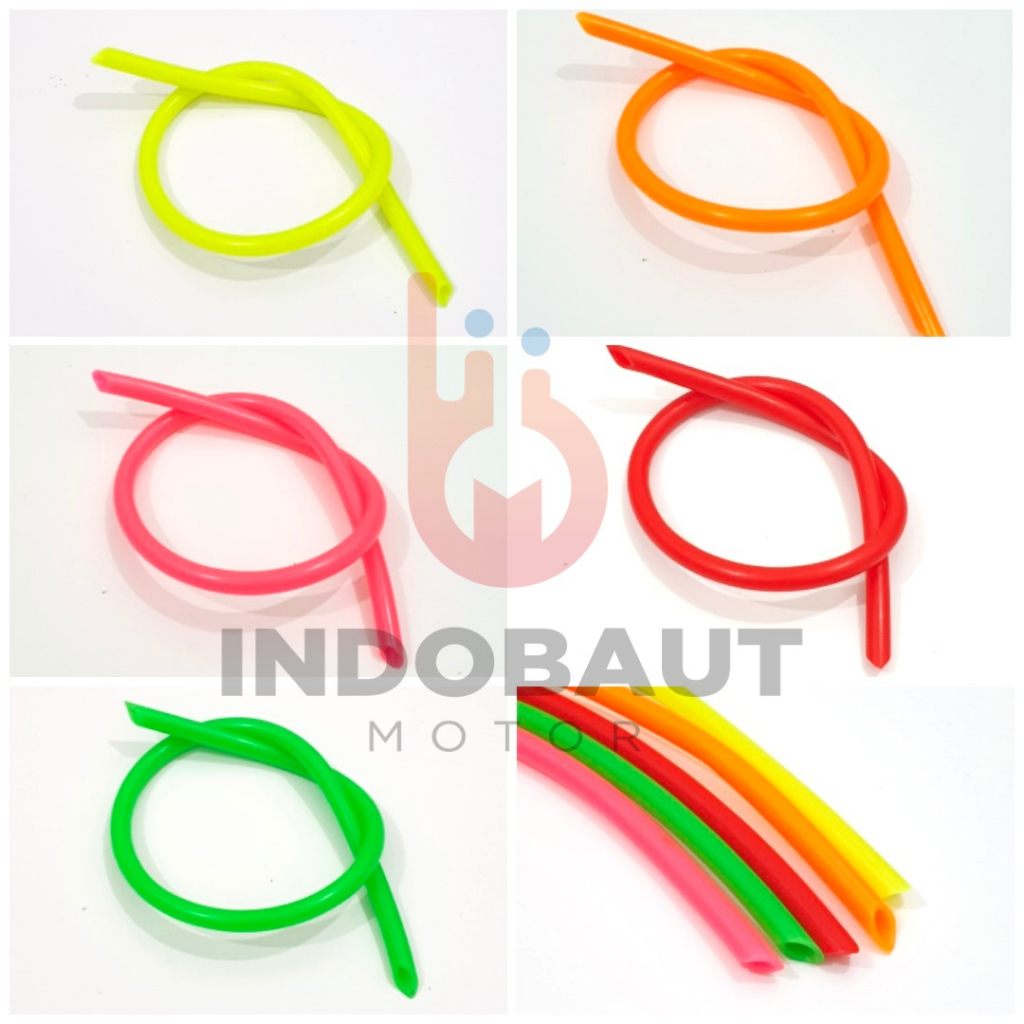 Slang Selang Bensin Motor Warna Panjang 40cm Panjang 40cm Diameter lubang selang bagian dalam: 5 mm Diameter lubang selang bagian luar: 7 mm Pilihan warna: Kuning Pink Merah Hijau Oren