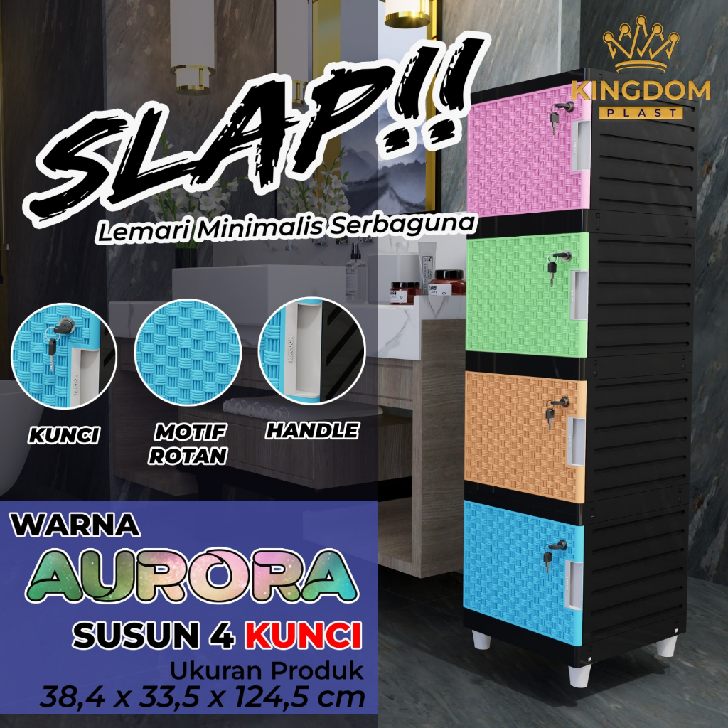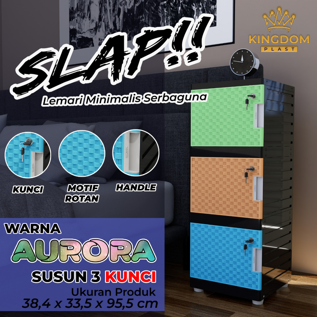 Detail KINGDOM LEMARI PLASTIK SERBAGUNA SLAP AURORA HITAM KUNCI MOTIF ROTAN LACI PUTIH