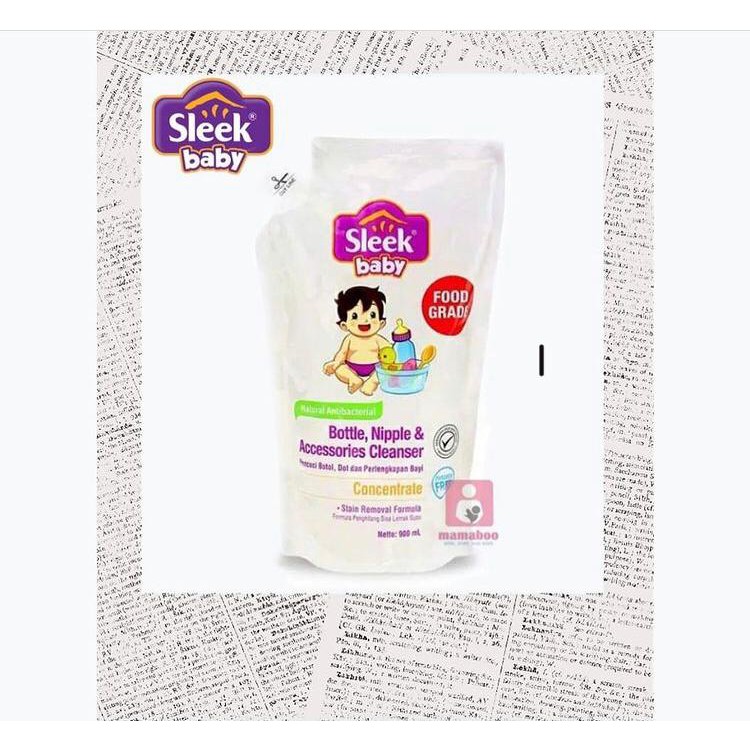 Sleek Bottle Nipple and Baby Accessories Cleanser merupakan cairan pembersih untuk botol, mainan ataupun perlengkapan bayi lainnya. Produk khusus pembersih botol dan aksesoris bayi dengan formula FOOD GRADE sehingga aman untuk si Kecil. Dilengkapi dengan formula Natural Antibacterial dan Stain Removal Formula yang efektif membunuh bakteri dan menghilangkan bau amis dan noda susu.