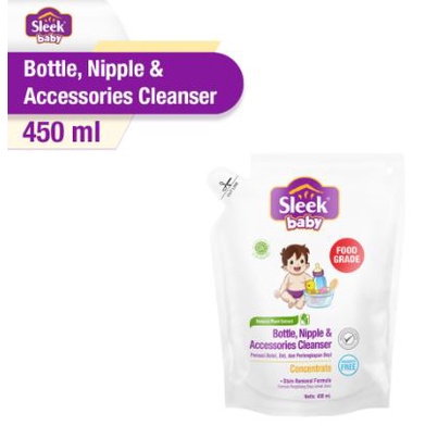 SLEEK Bottle, Nipple & Accessories Cleanser diformulasikan secara khusus untuk membersihkan perlengkapan bayi dengan bahan 100% FOOD GRADE dan alami yang aman untuk bayi anda.