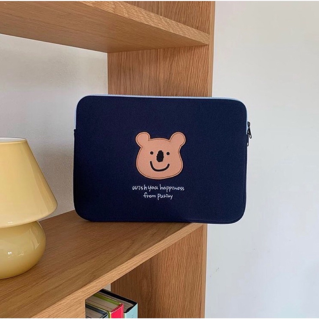 Sleeve Pouch Sarung Tas Bag Case Ipad Tab Tablet Macbook Air Pro Laptop Asus Acer Lenovo HP Huawei 11 12 13 14 15 inch Motif Gambar Koala Bear Beruang Warna Biru Navy Lucu Cute Murah Korean Model