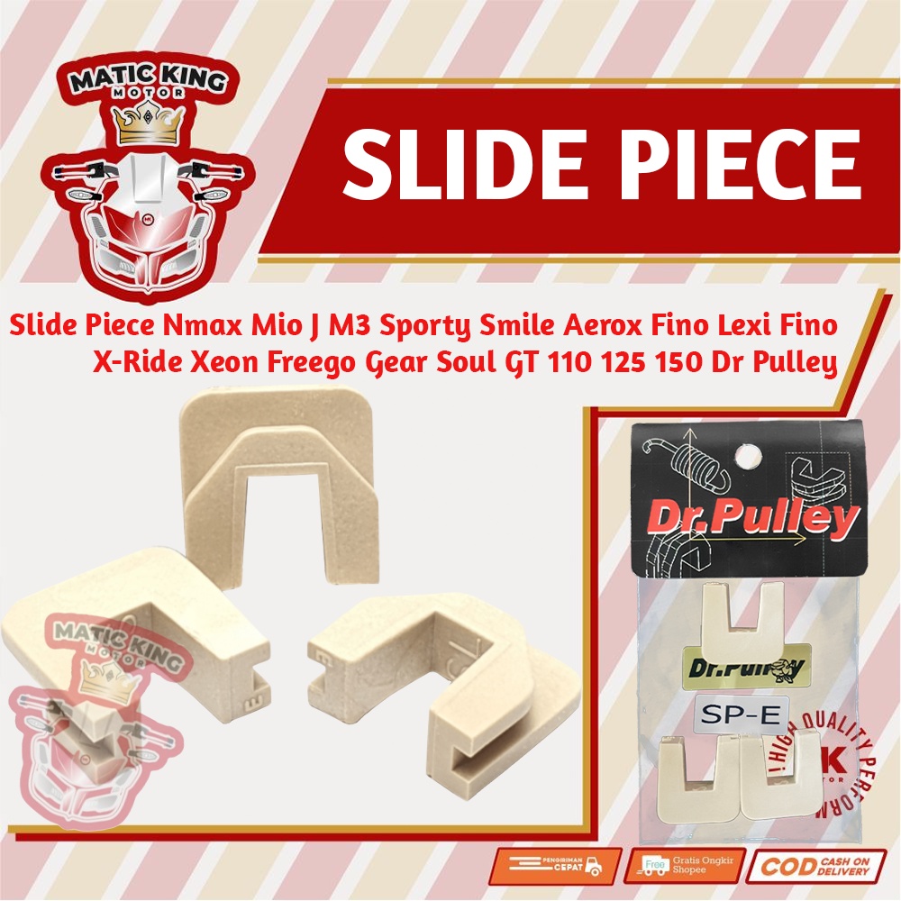 Slide slider piece Mio Nmax Aerox Fino X-Ride Lexi Freego Gear Fazzio Nouvo Xeon Sporty Smile Soul GT 110 125 150 155 Dr Pulley SP2012-E Slide piece CVT disarankan diganti berbarengan dengan roller dan Vanbelt CVT di motor. Menjadi salah satu komponen yang tergolong jarang diperhatikan di area CVT motor matic, slide piece juga punya fungsi penting. Slide piece CVT atau sering disebut slider posisinya di tutup rumah roller dan berfungsi sebagai peredam getaran dari area tersebut. kalau rusak pasti bakal muncul bunyi berisik atau klotak-klotak dari area CVT. bengkel resmi Honda ini menyarankan untuk mengganti slide piece ini berbarengan dengan roller dan v-belt.