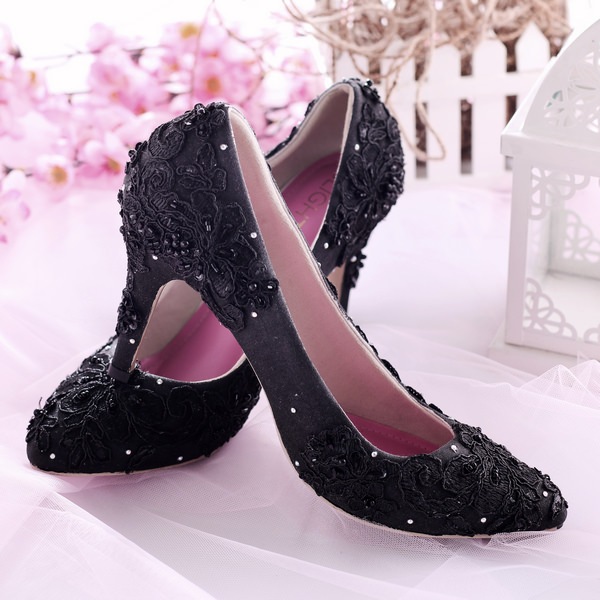 Detail SLIGHT Sepatu Pointed Brukat Hitam Lace Wedding Shoes High Heels Payet | Sepatu pesta kondangan | Wedding shoes pengantin