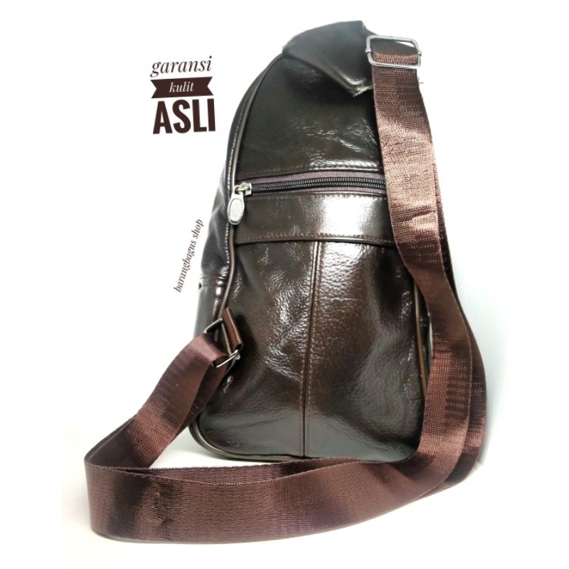 Detail Sling bag Tas Selempang selendang Pria Kulit Asli lembut / halus Polos tanpa merk