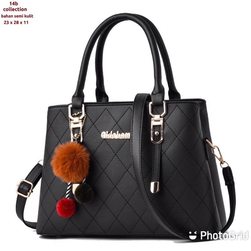 Detail slingbags wanita GHIA bags tas kulit batam plus pompom tas selempang polos simple elegant top handle