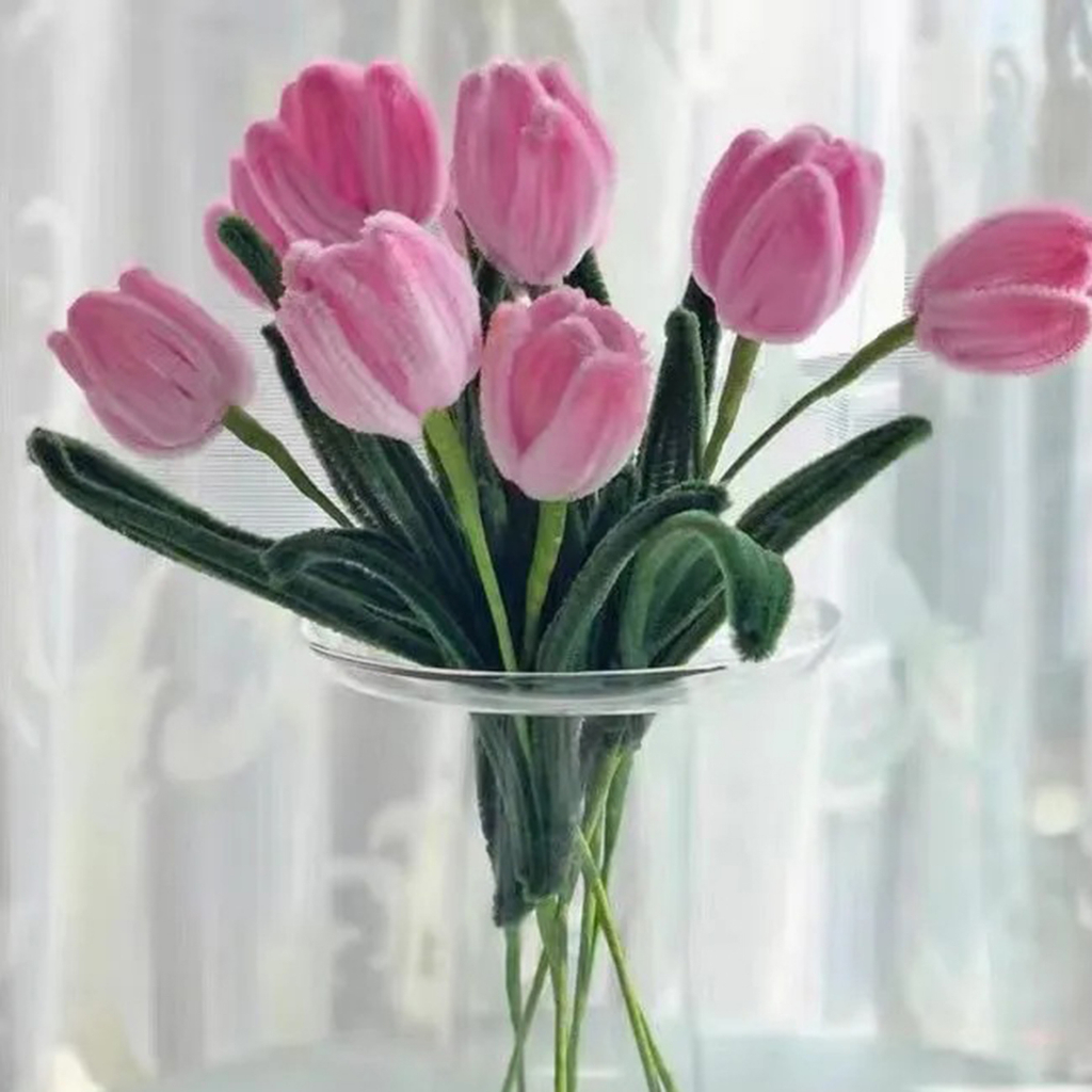 Detail Sls_1 Set Kerajinan Fleksibel Kawat Yang Dapat Ditekuk Warna-Warni Chenille Batang DIY Tulip Buket Membuat Kit Anak Gadis DIY Bunga Seni Proyek Perlengkapan Kerajinan Hadiah Ulang Tahun