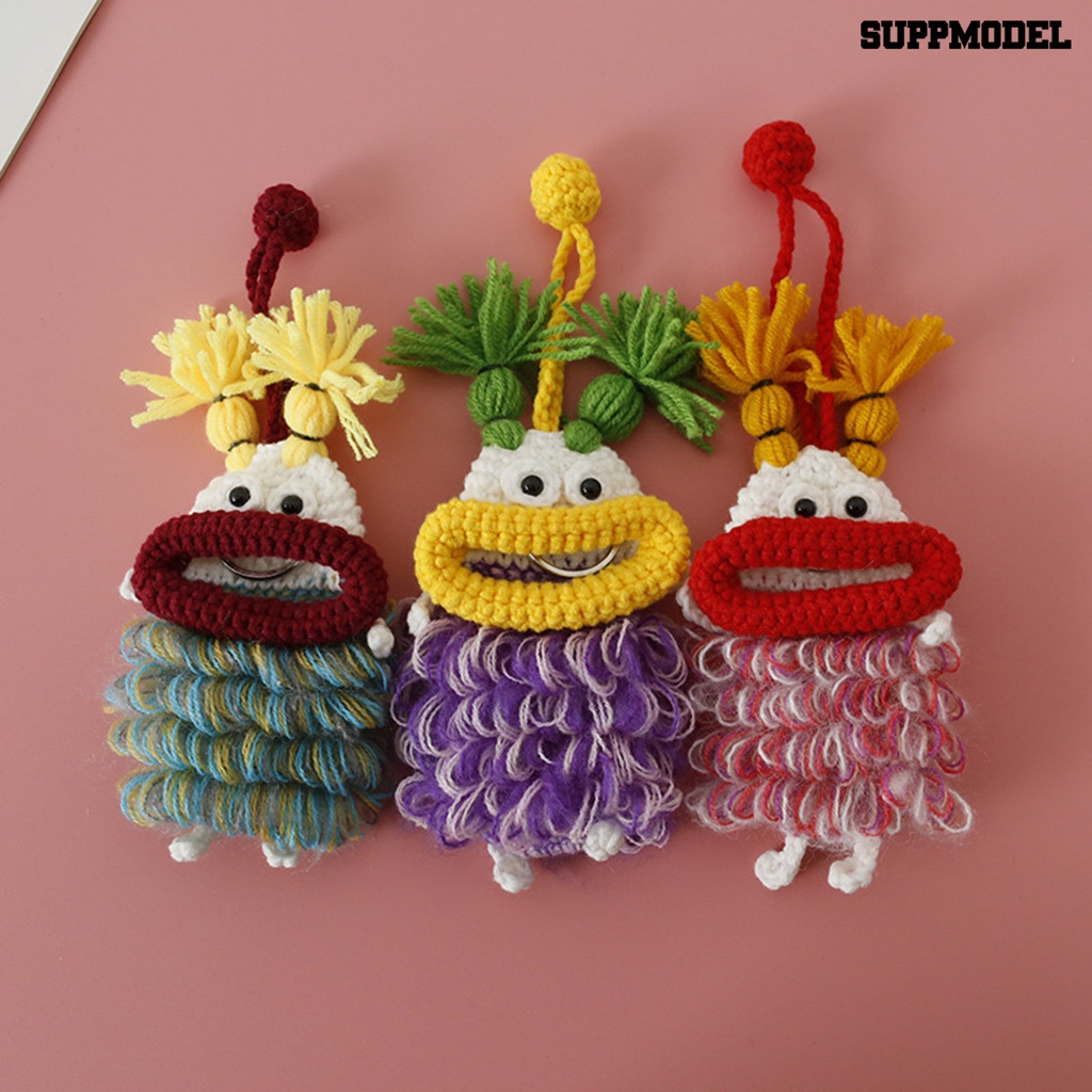 Detail [SM] Key Case Dengan Lanyard Handmade Sosis Mulut Besar Universal Crochet Keychain Cover Rajut Key Case Pendant Perlengkapan Otomatis