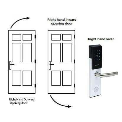 Gagang Pintu Tangan Kanan menghadirkan Smartdoor Lock untuk Anda yang membutuhkan handle atau gagang pintu menggunakan tangan sebelah kanan saat membuka pintu dari arah luar ruangan. Gagang pintu ini cocok bagi Anda yang memiliki pintu menggunakan engsel di sisi sebelah kanan saat menghadap pintu dari luar ruangan. Sebelum membelinya, pastikan handle pintu Anda menggunakan tangan kanan dari arah luar, serta menggunakan tangan kiri dari arah dalam. Anda perlu memperhatikan posisi tombol password atau tapping RFID berada di arah pintu luar. Apabila rumah Anda memiliki pintu dengan handle atau gagang pintu yang menggunakan tangan kiri saat masuk ke dalam ruangan.
