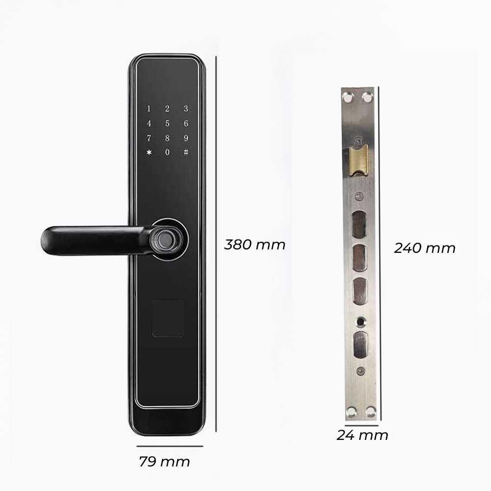 Spesifikasi Dimensi Smart Door: 380 x 79 mm Lockcase: 24 x 240 mm Lain-lain Tipe Baterai: 4 x Baterai AA (Baterai Tidak Termasuk)
