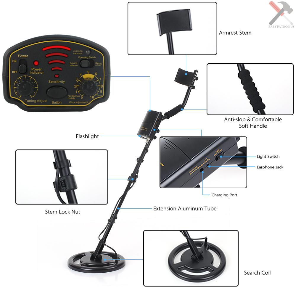 Features: Ground Balance & Recognition Mode - You can search nonferrous metal & ferrous metal with detection mode of ground balance & recognition. Great for detecting coins, jewelry, prospecting, shallow water hunting, beach hunting. Wide Usage - Perfect for finding metal objects and anywhere that hidden metal needs to be detected. Designed to Find Metal - Search gold & silver jewelry, coins and other metal in the ground. Audible & Visual Alarm with LED Light for Target Indication - You don't have to keep watching the detector, when an object is being detected, a beep sound will remind you. Lighting Function - Bright flashlight accesses convenient measurement in the dark. Adjustable Height of Metal Detector - Easy to adjust the detector's height for comfortable use. Earphone Jack - Provided for headphone connection. Both stereo or mono headphone can be used.