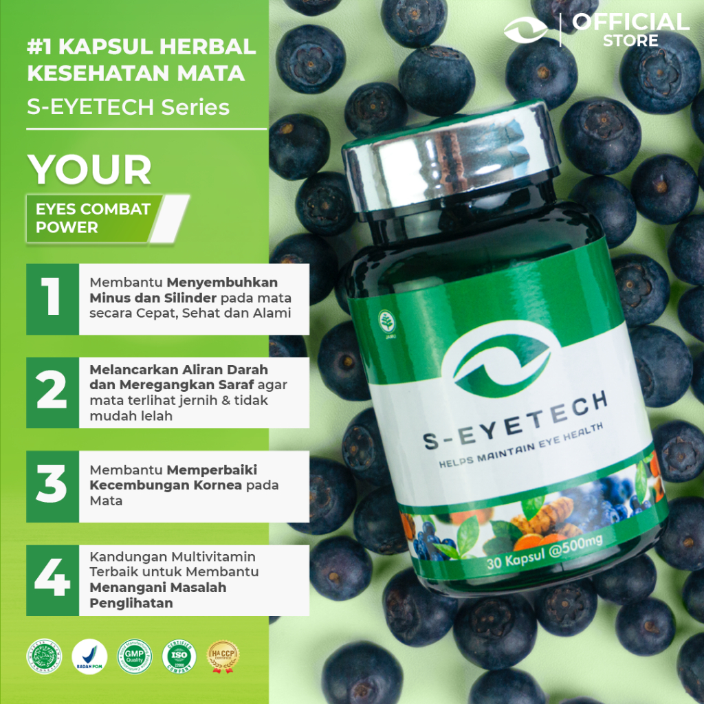 1. 🟢 S-EYETECH ( 30 Kapsul ) BPOM TR213341081 Kaya akan Vitamin A, B6, C E, dan K , Bilberry, Curcuma & Green Chiretta