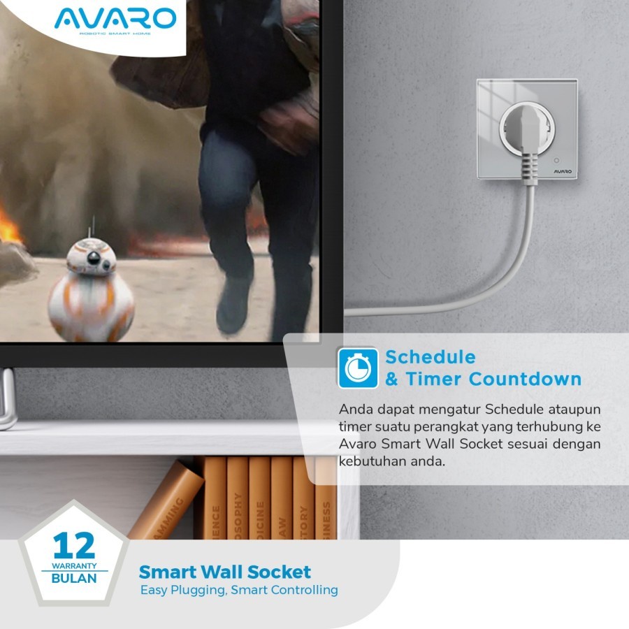 AVARO WIFI SMART WALL SCOKET Colokan listrik dinding pintar yang dapat di kontrol melalui smartphone berbasis IOS dan ANDROID sistem, Anda dapat mematikan dan mengihidupkan dari manapun dan kapanpun. Membuat hidup Anda menjadi lebih Mudah. Juga memiliki design yang elegan menggunakan material kaca membuat rumah anda menjadi lebih terlihat indah dan kekinian. Wall switch yang memiliki output daya maksimal 3000 Watt ini cocok untuk menghidup-matikan peralatan elektronik rumahan seperti AC, Kulkas, kipas angin, setrikaan, TV, dan lainnya. AVARO SMART Wall Socket mudah dipasang karena bentuknya yang standar, tipe colokan yang paling umum digunakan di Indonesia.