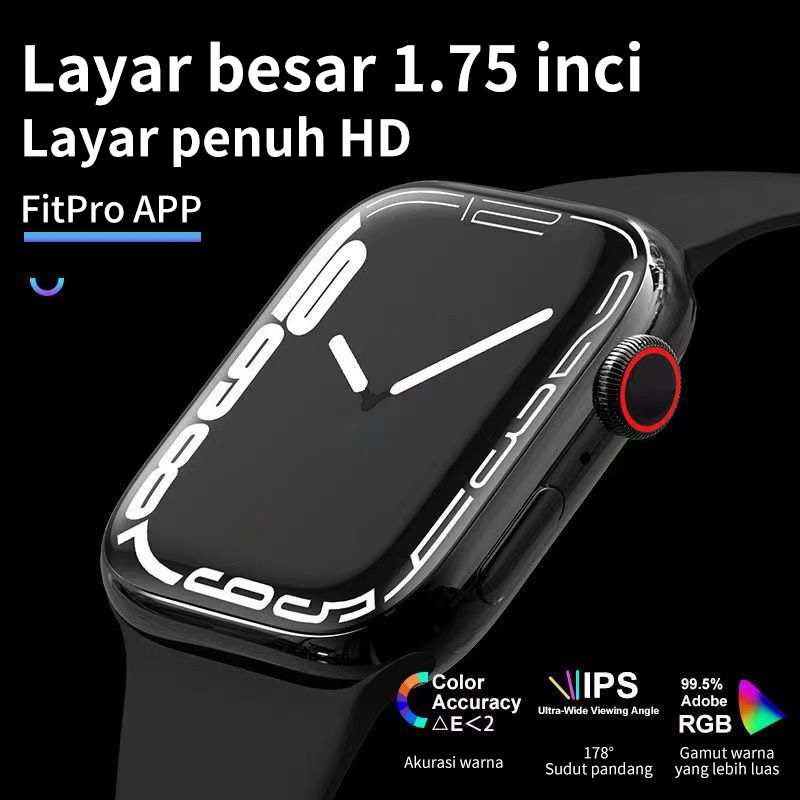 FUNGSI : - Panggilan bluetooth ( panggilann telep0n dari smart watch ) - Custome wallpaper foto - bluetooth Musik ( kontrol musik dan dengar musik dari smart watch ) - Scroll Crown, Kontrol menu dengan mudah untuk Zoom in/out, Ganti tampilan jam, ganti menu - Notifikasi : Sosmed dan pangilan - IP68 Water resistance untuk ketahan dari percikan air dan keringat -Mode olahraga : Berjalan, Berlari, memanjat, bersepeda, bola basket, sepak bola, tenis meja, bulu tangkis, dll. - Multifungsi : Remot kamera , alaram .Monitor detak jantung,tekanan darah,jam tidur - Fitur Find Phone ( mencari handphone/ smart watch ) - Tali/strap bisa dilepas & diganti STRAP IWATCH -Teknologi Gesture recognition, angat tangan anda untuk menyalakan layar dan periksa waktu