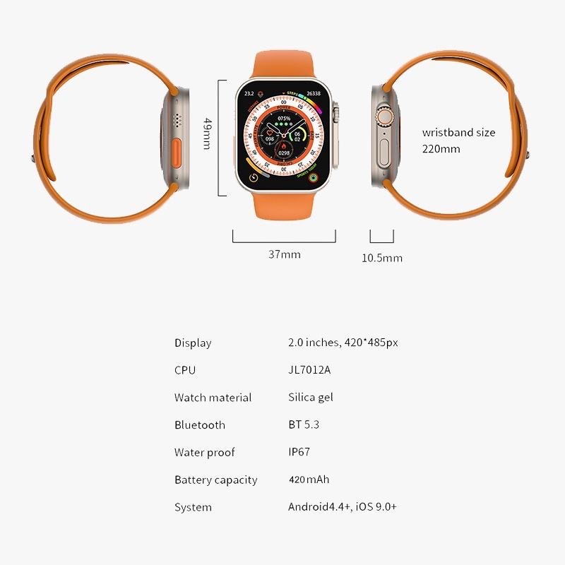 - 1x Unit The Watch 8 Ultra - 1x Box Watch - 1x Manual Book - 1x Charger