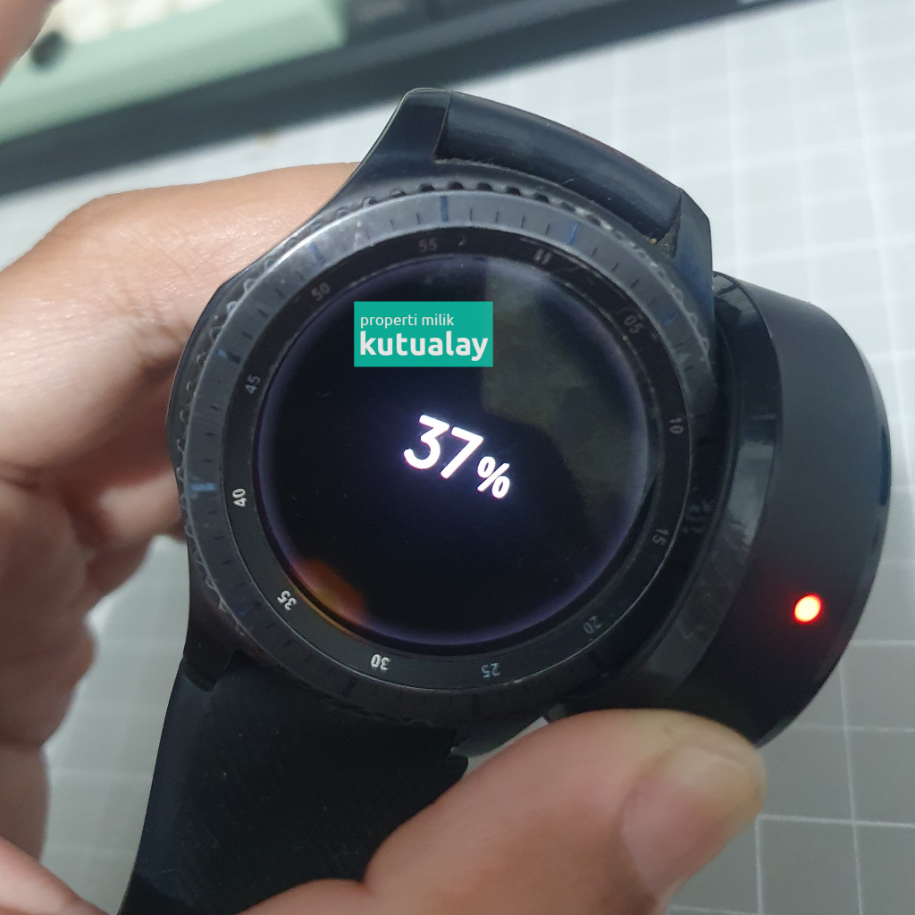Samsung Gear S3 Frontier. LCD ada bercak kekuningan di dalam lcd sesuai gambar, gatau kenapa. Tapi tampilan masih normal. Kondisi baterai normal masih bisa di cas, cuman mesin ga mau di hidupkan, kemungkinan karena tombolnya ga bisa dipencet. Udah lama ga dipake jadi ga nyala lagi.