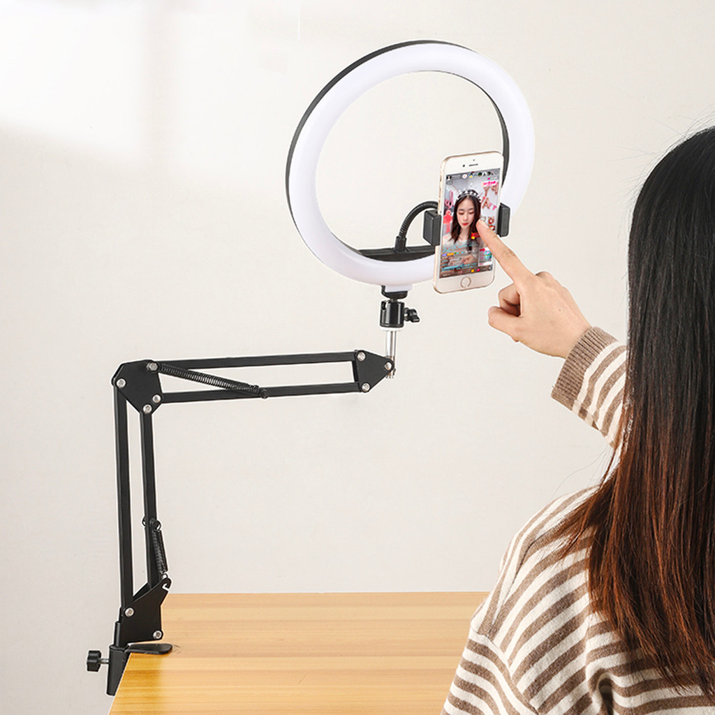 Tripod+Lampu Set 1x 26cm ring light 1x Video Boom Arm 1x Desk Clamp 1x Ball Head 1x HP holder