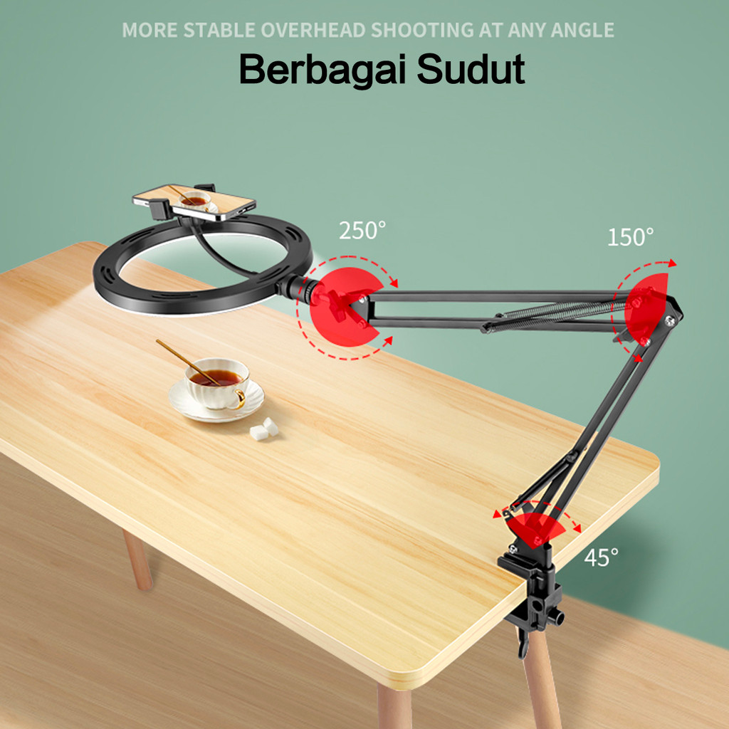 Smartphone Tripod Overhead+Ring Light Selfie Meja Kamera Handphone Holder HP Video Boom Arm Cantilever Stand Phone holder