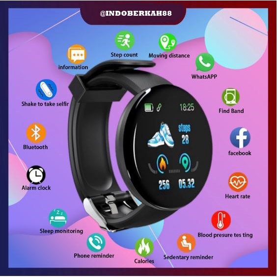 SmartWatch D18 Smart Watch Olahraga Tahan Air Pria dan Wanita Bluetooth Digital Smart Watch (Indoberkah88)