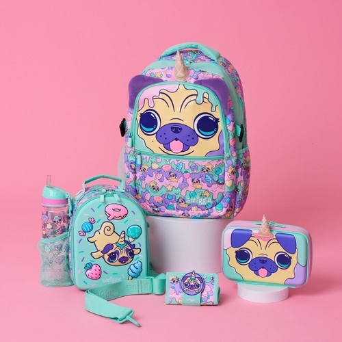 Hey there Smigglers! Meet our newest collection filled with the most epic creature combinations! Pur-maid, Pug-icorn, Uni-fly, Tiger-bot and Dino-roar can't wait to join you on your next wild adventure. Meet our most versatile backpack yet! This super functional design has two special hooks on the side that perfectly clip into our matching Hey There Square Lunchbox. It also features 3 roomy zipped compartments, dual drink bottle sleeves and a padded tech pocket that fits a 15 inch laptop! Check out the epic applique details that bring this Hey There character to life! Three zipped compartments Main compartment with double zip Soft PVC outer Dual drink bottle sleeves Padded adjustable shoulder straps Padded carry handle 15 inch laptop compartment Internal name label W 30cm x H 42cm x D 13cm Approximately 17.8L Capacity