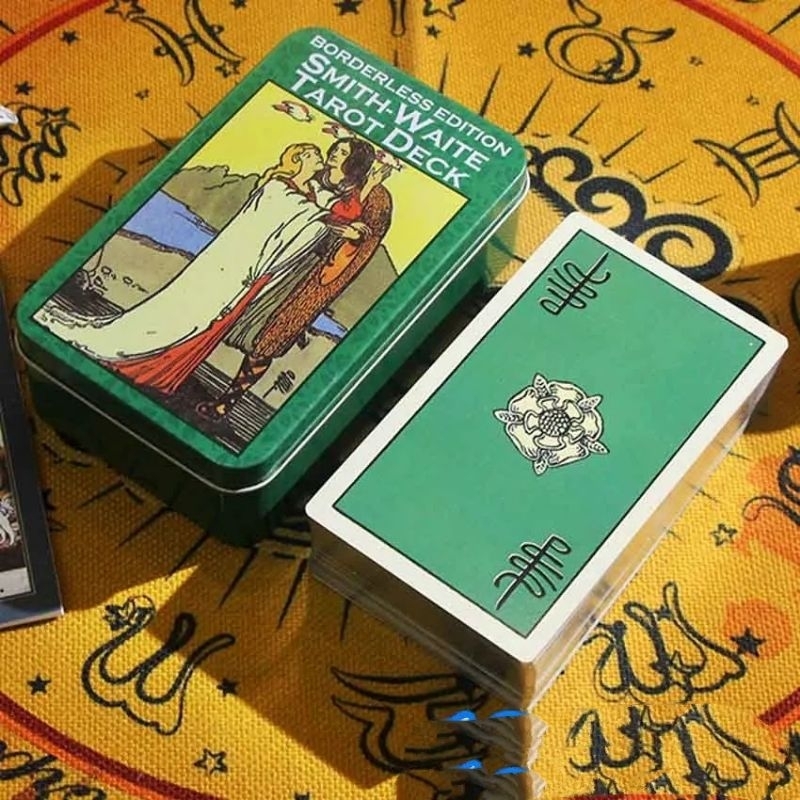 Smith Waite Tarot Borderless Edition 12x7cm include guide paper kemasan kalengSmith Waite Tarot Borderless Edition 12x7cm include guide paper kemasan kalengSmith Waite Tarot Borderless Edition 12x7cm include guide paper kemasan kaleng
