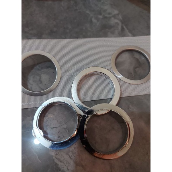 KETERANGAN : ● 1 meter pita smokring = terdiri dari 9 lubang pita dan 9 ring smokring ● Diameter lubang smokring 4,2 cm ● Lebar pita smokring 7cm ● Bahan terbuat dari plastik yang di lapisin dengan warna gold dan silver ● Pengemasan memakai bublewrap sehingga aman
