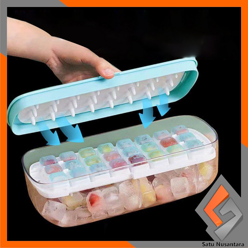 Perlengkapan Rumah > Peralatan Dapur > Perlengkapan Dapur Lainnya > SN-C873 Cetakan Es Batu Mode Tekan Press Dengan Wadah Free Sendok Plastik / Tempat Penyimpanan Ice Cube Container Pencetak Es Batu Anti Pecah