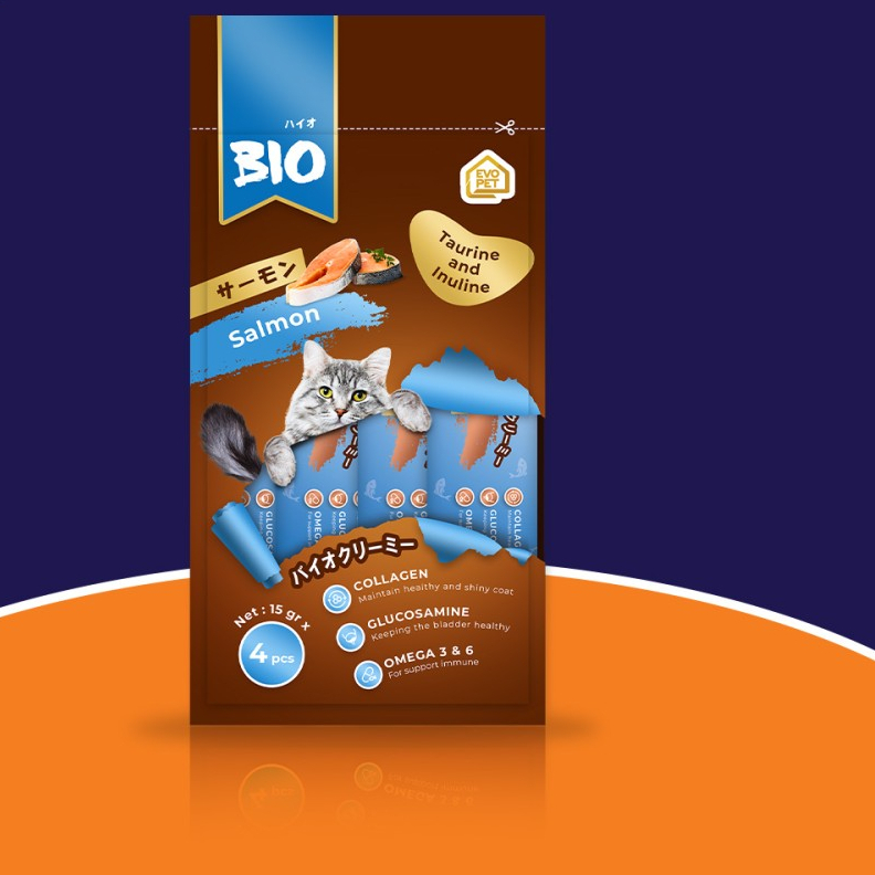 Hobi & Koleksi > Makanan Hewan > Snack Kucing > SNACK BIO CREAMY TREATS 15gr ISI 4 salmon