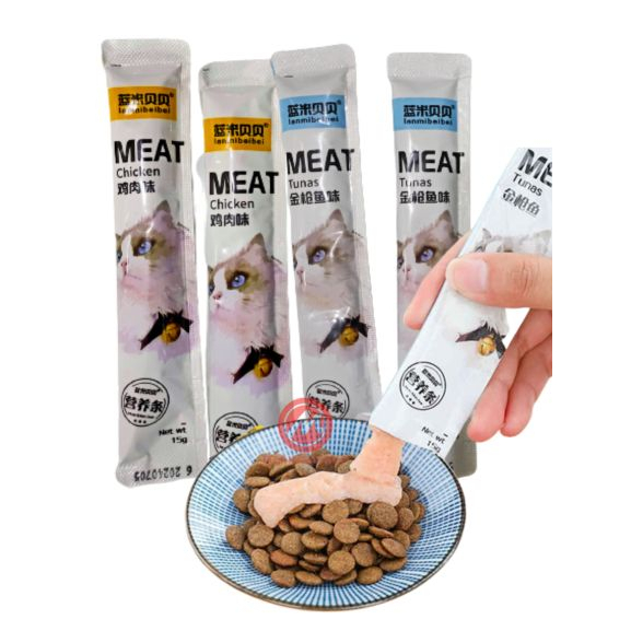 LANMIBEIBEI Snack merupakan snack yang enak untuk kucing + 100% daging asli, kaya nutrisi, enak dan menarik. + Grain-free, bermanfaat untuk pencernaan, mencegah alergi