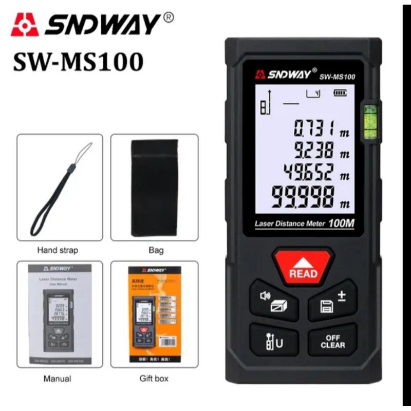 SNDWAY Meteran 100M Laser Distance Digital Jarak Jauh Meter like xiaomi - MerahSNDWAY Meteran 100M Laser Distance Digital Jarak Jauh Meter like xiaomi - Merah