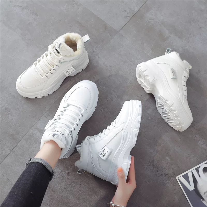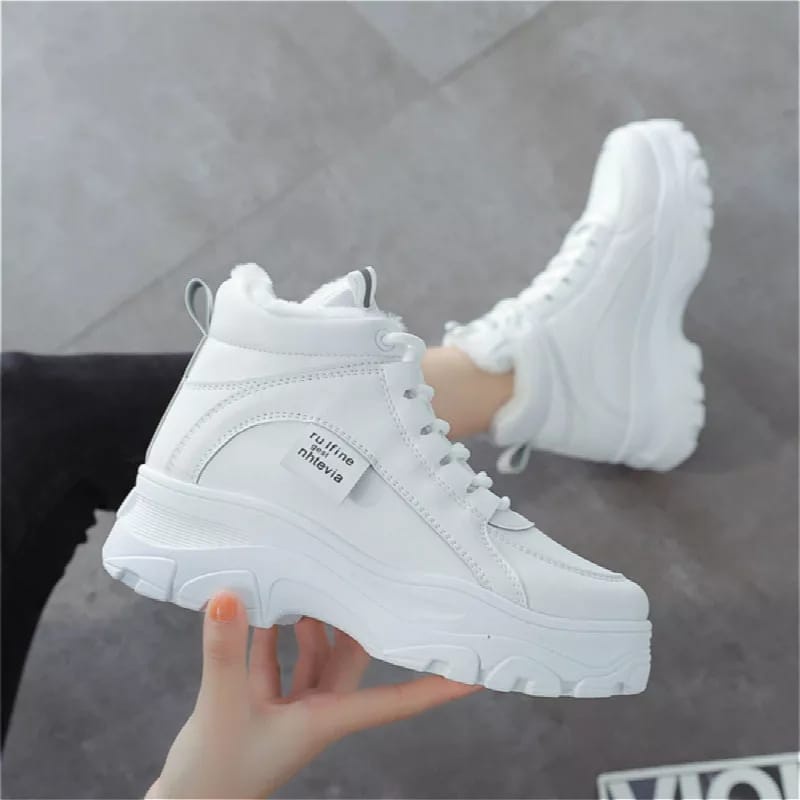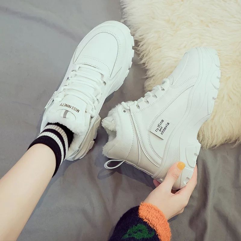 Detail Sneakers Boots Kasual Wanita High-Top Sepatu Wanita Hangat Berbulu Jenifers