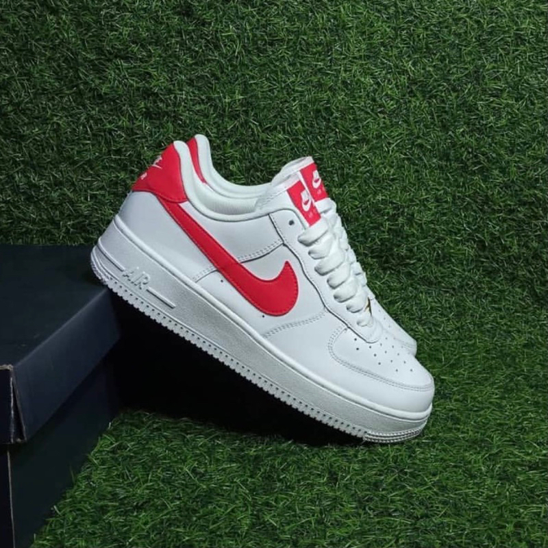 Detail SNEAKERS PRIA DAN WANITA A!R FORC3 1 PUTIH LIS MERAH SEPATU KASUAL TERBARU GAYA MASA KINI TERLARIS