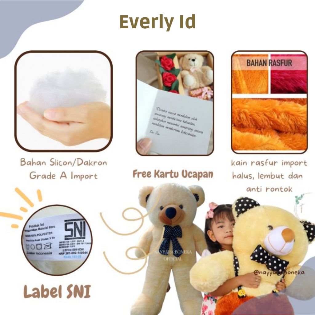 Video perkenalan produk SNI ! Boneka Jumbo 1,3 Meter Beruang Teddy Bear 1 2 1.5 1,3 Meter m Pita Syal Jojon Tedy Ber Murah Termurah untuk kado ulang tahun anak pacar teman laki perempuan pria wanita cowok cewek gemes import pacar BESAR MINI KECIL everly.id everlyid gemoy lucu. Sumber: Shopee.