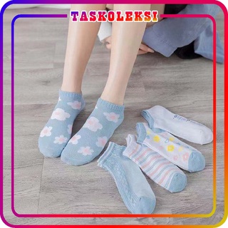 ☛TK☚ Kaos Kaki Wanita Motif Bunga Biru Fashion Korea Women Sock Import Murah K004