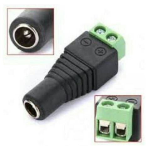 Dengan jack DC female ini anda dapat memasang kabel + dan - dengan baut dan menghubungkan ke adaptor.