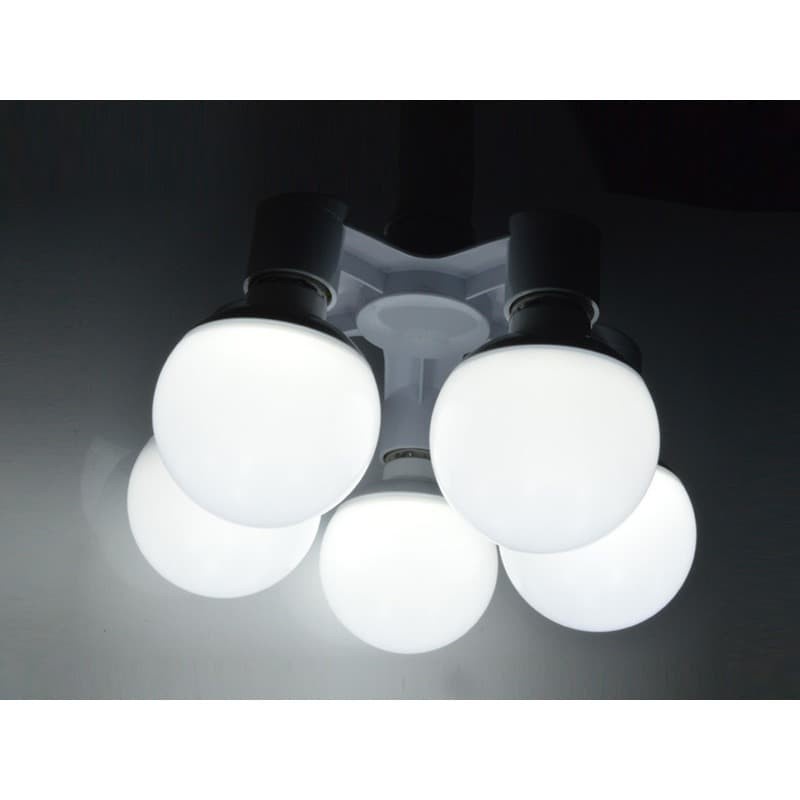 Fitting lampu yang dapat memuat 5 buah lampu bohlam sekaligus, sangat cocok untuk Anda yang bergerak di bidang fotografi untuk dipakai di studio Anda. Dengan menggunakan fitting lampu ini, penerangan akan semakin meningkat dengan penggunaan 5 buah lampu sekaligus dalam 1 socket.