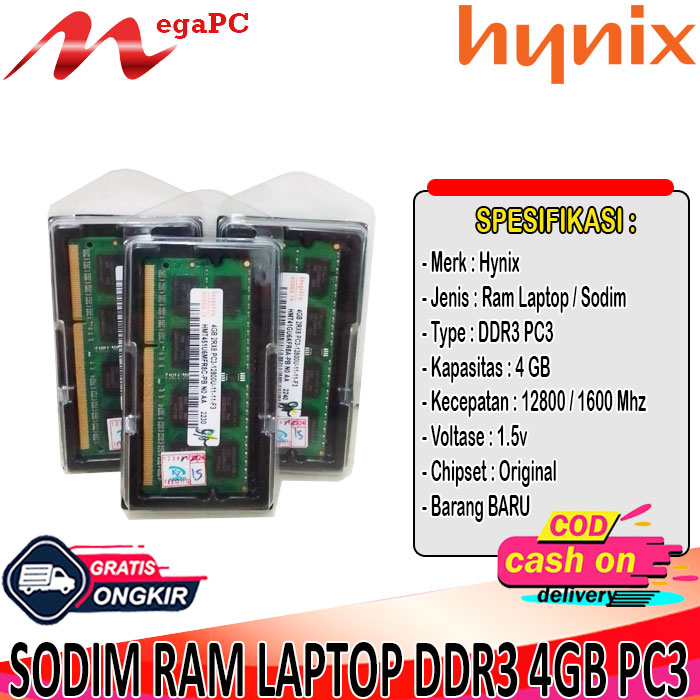 Detail SODIM RAM LAPTOP DDR3 4GB PC3 12800 HYNIX