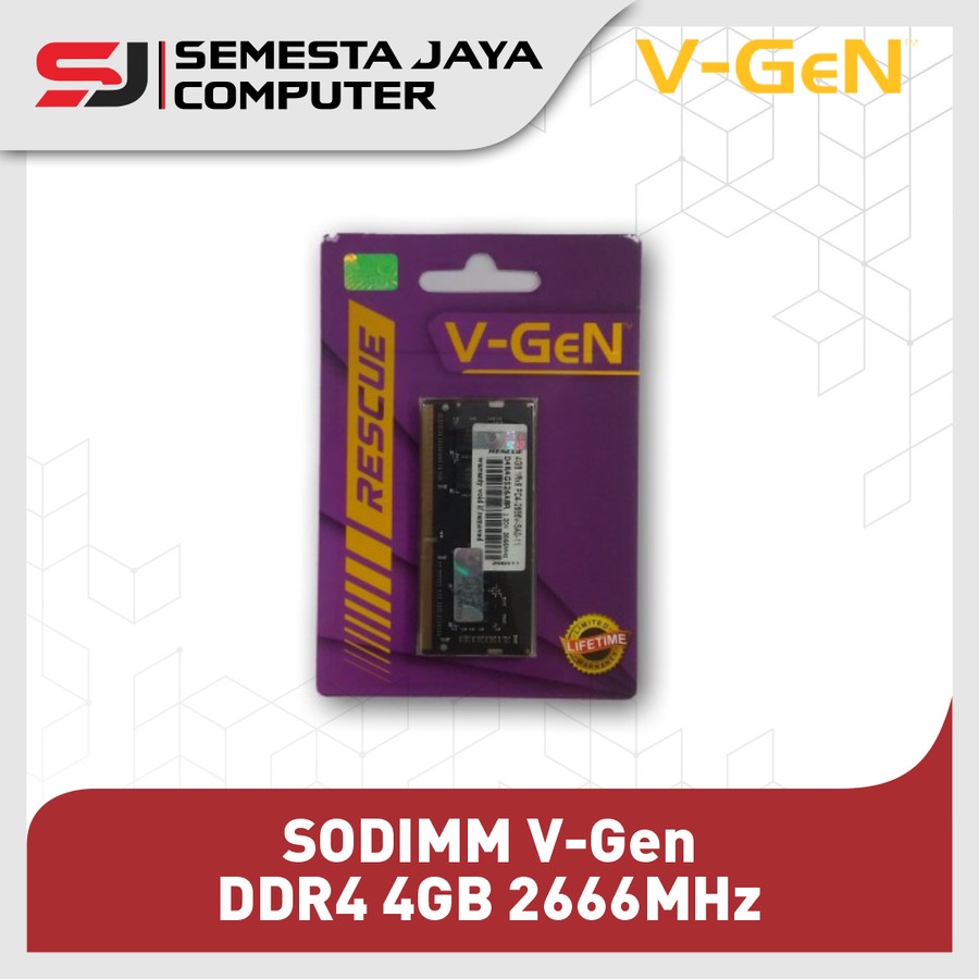 Komputer & Aksesoris > Komponen Desktop & Laptop > Memory RAM > SODIMM DDR4 4GB 2666MHz V-GeN Sodim RESCUE RAM VGen