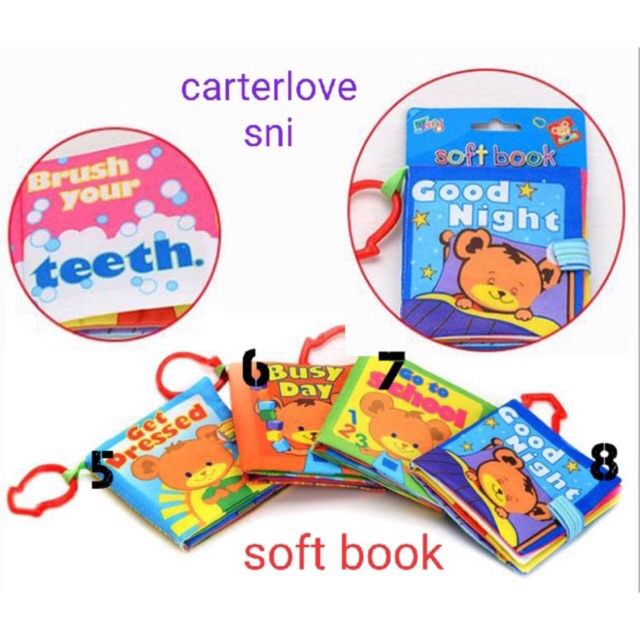 Softbook / buku kain keluaran CARTER ini lucu banget! Ada bunyi kresek2 di tiap lembar halamannya bila diremas dan juga bunyi squak-squak..