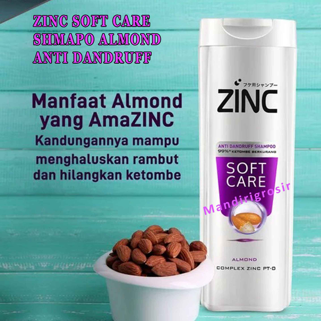 Detail produk dari ZINC SHAMPOO SOFT CARE ALMOND 170 ML -Detail produk dari Zinc Shampoo SOFT CARE ALMOND Botol - 170ml-Isi 170ml-Shampoo Anti Dandruff SOFT CARE ALMOND-Kemasan botol-Mengandung Complex ZPT-O-Mengandung Ekstrak Green tea-Menjadikan rambut tetap bersih dan sehat-Menjadikan kulit kepala segar, rambut bebas ketombe, lembut dan mudah diatur