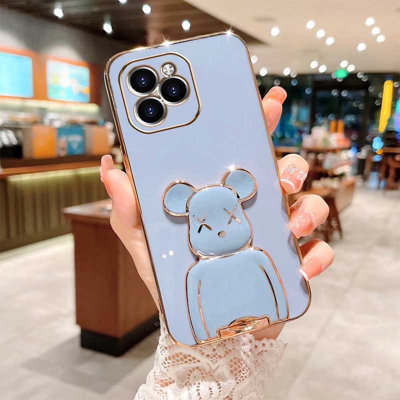 Casing Fashion Kompatibel untuk iPhone 6 6S Plus iPhone7 8Plus XR XS XS Max iPhone11 Pro Max SE Cool Bear Invisible Stand Holder Pelapisan Mewah Silicone Shockproof Soft Cover