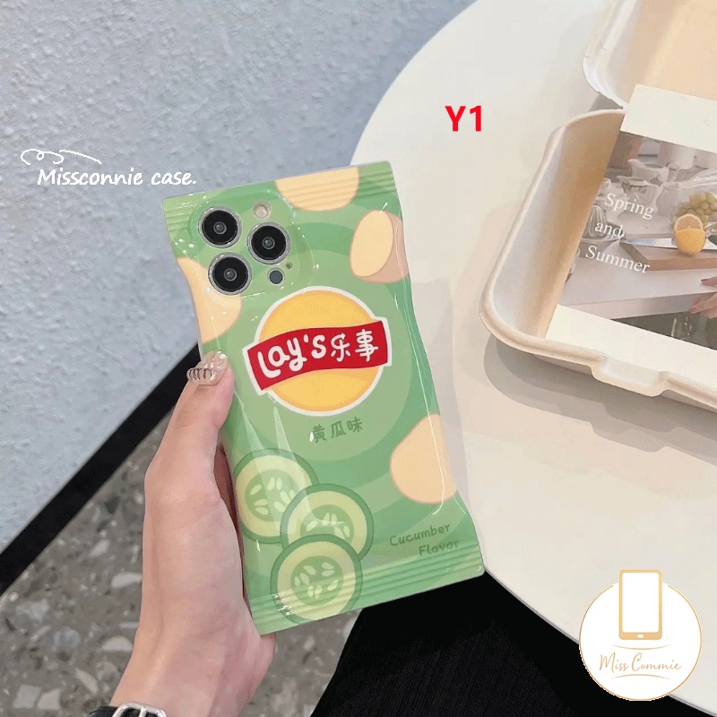 Penutup Kasus Kompatibel untuk iPhone 6 6s 7 8 Plus 11 12 14 13 Pro Max XR 14 Plus X XS Max SE 2020 Retro Cute Lay Keripik Kentang Kemasan Permen Kreatif Kemasan Casing Ponsel Lembut